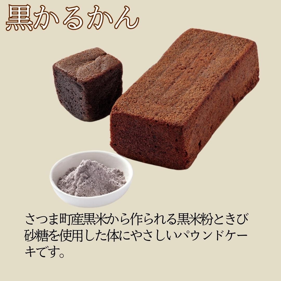 ・さつま町産黒米から作られる黒米粉ときび砂糖を使用した体にやさしい「黒かるかん」