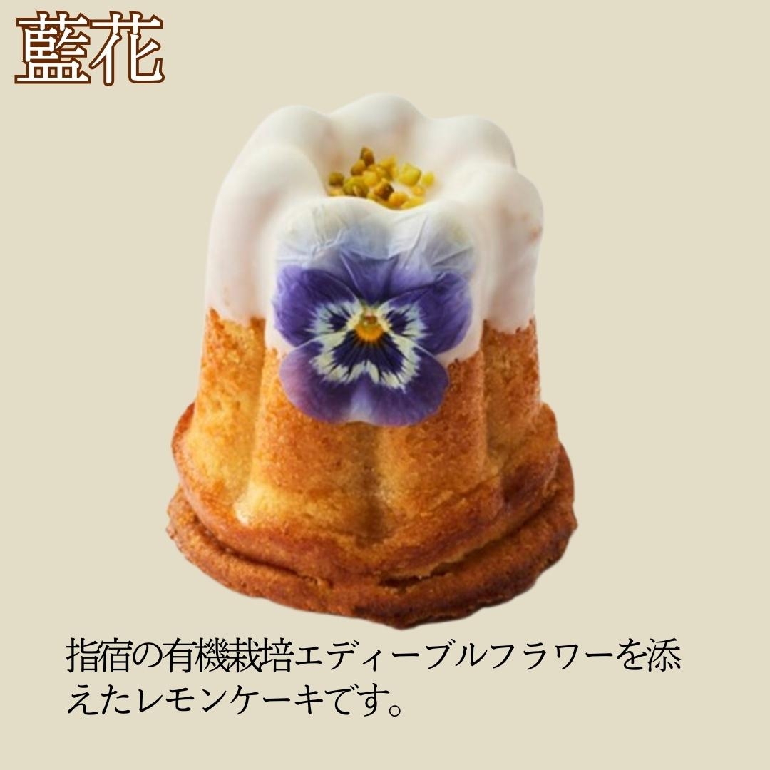 ・指宿市で有機栽培されたエディーブルフラワーを添えたレモンケーキ「藍花」