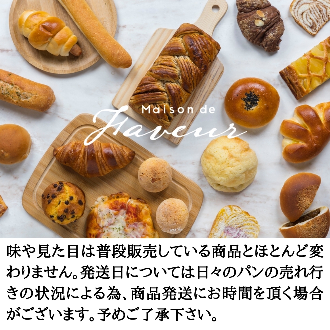 味や見た目は普段販売している商品とほとんどかわりません。発送日については日々のパンの売れ行きの状況による為、商品発送にお時間を頂く場合がございます。予めご了承の上ご注文下さい。