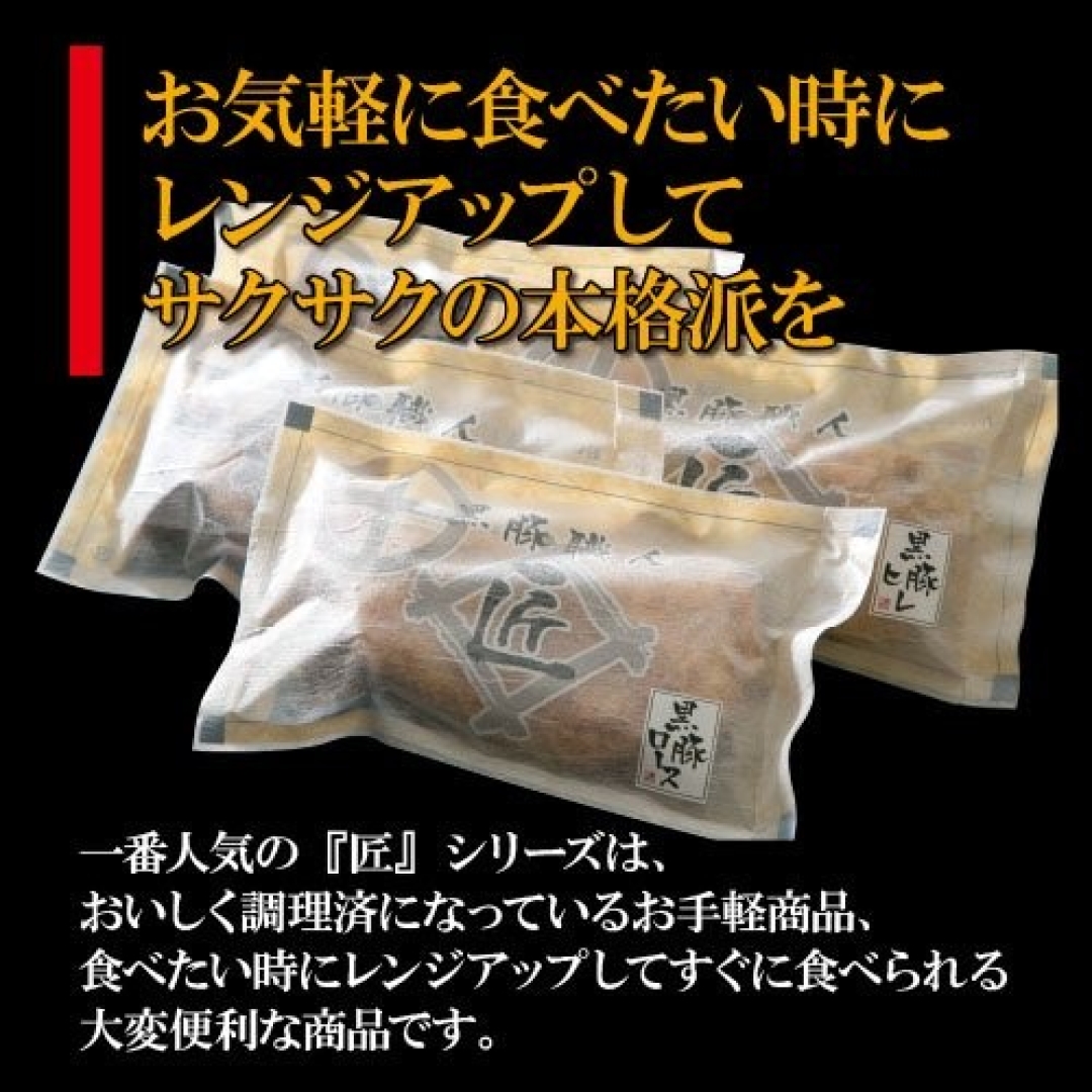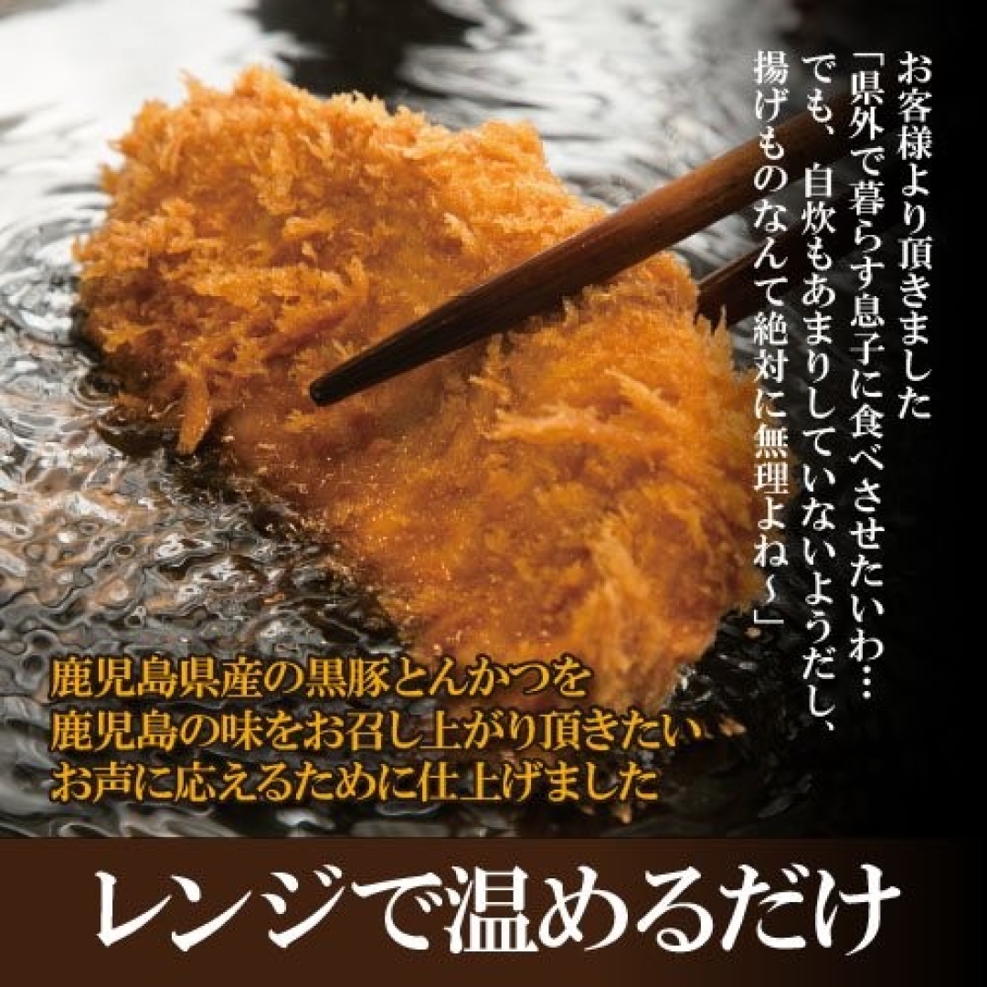 鹿児島県産のバークシャー種を使い、生パン粉でサクサクの食感に仕上げ瞬間冷凍しました。黒豚の特徴である旨味の強さ、脂身の甘味、身の歯切れの良さをご堪能頂けます。