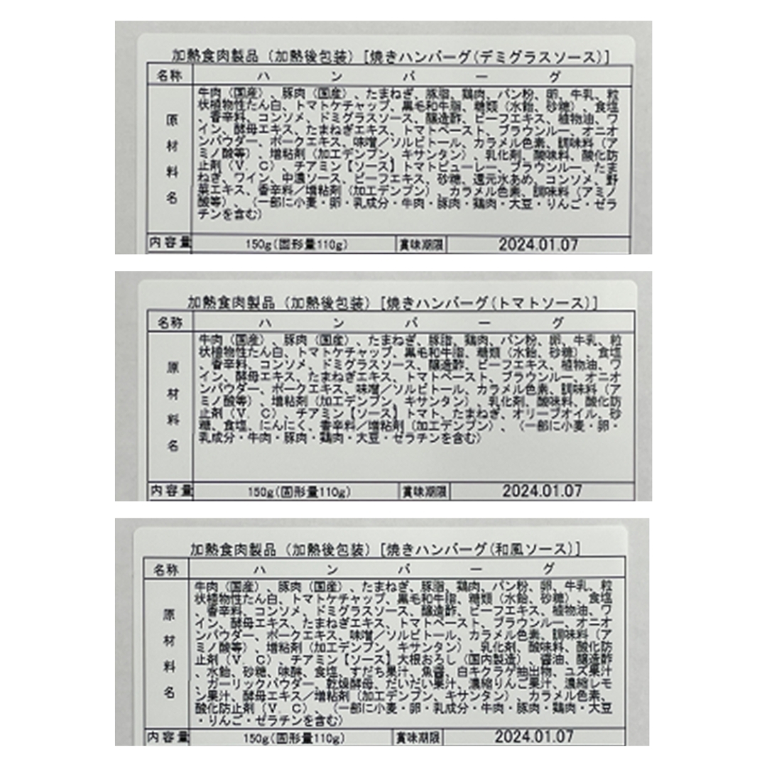 (※ハンバーグは全て固形量110g、ソース40g)