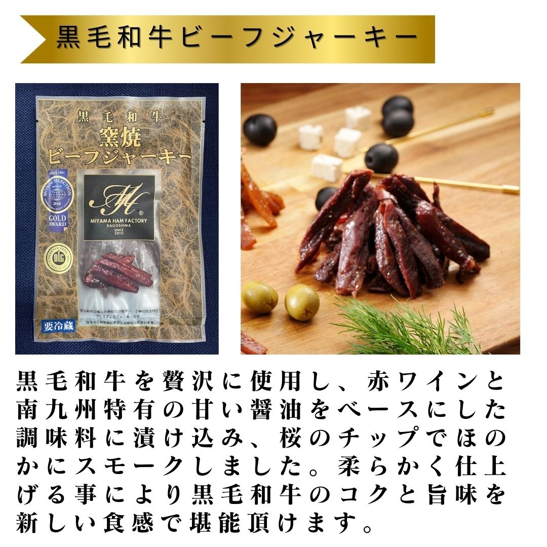 国産黒毛和牛を贅沢に使用した新食感ジャーキー、黒毛和牛の牛すじを贅沢に煮込んだ国産牛すじ赤ワイン煮、柔らかくジューシーな深い味わいのローストビーフ、ローストビーフにつけてお召し上がり頂くわさびソースの詰合せセット。