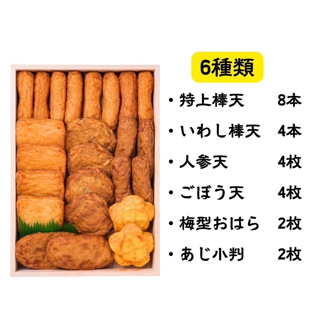 こちらの商品は6種類/24個のさつま揚げが入っております。