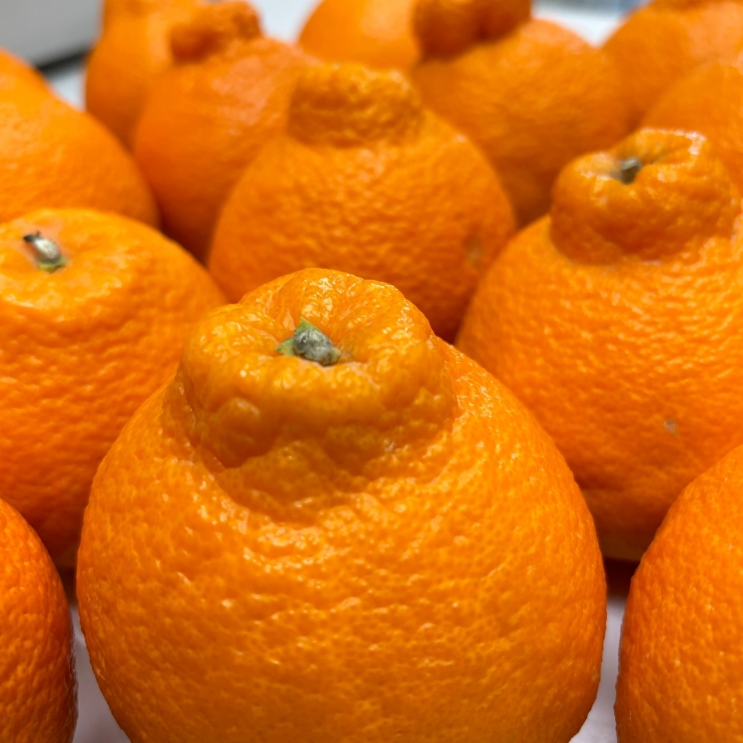 不知火は、ポンカンと清見オレンジを掛け合わせた品種で、ゴツゴツとした見た目ながら、濃厚な甘みとほのかな酸味を持つジューシーな口当たりが特徴です。