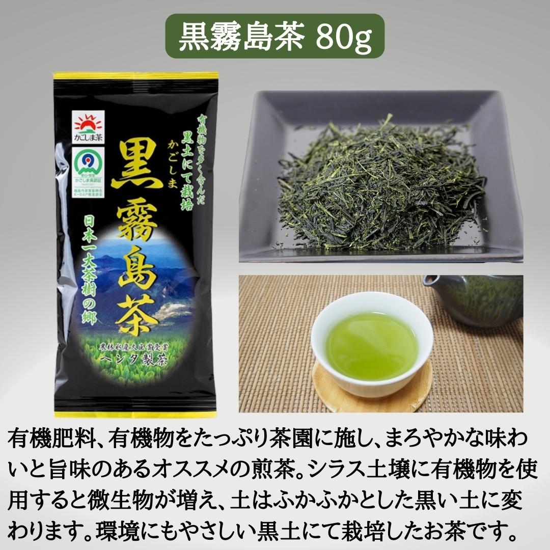 有機肥料、有機物をたっぷり茶園に施し、まろやかな味わいと旨味のあるオススメの煎茶。 シラス土壌に有機物を使用すると微生物が増え、土はふかふかとした黒い土に変わります。 環境にもやさしい黒土にて栽培したお茶です。
