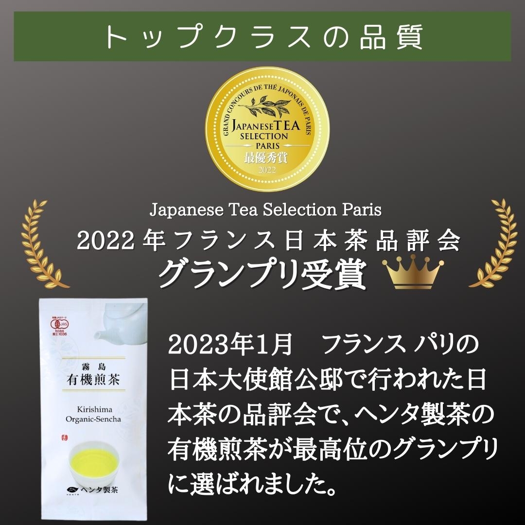 フランス日本茶品評会グランプリ受賞の霧島有機煎茶を含む高品質有機茶詰合せです。