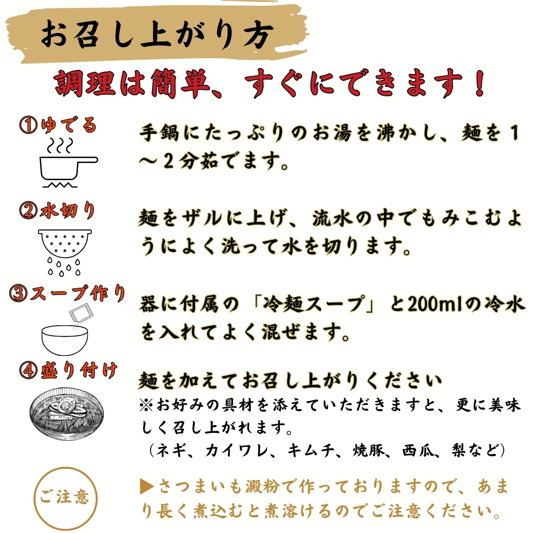 サツマイモが鹿児島に伝来した1705年から三百年目にあたる2005年、 サツマイモでん粉を使った日本初の麺「さつまいも冷麺」を発売致しました。