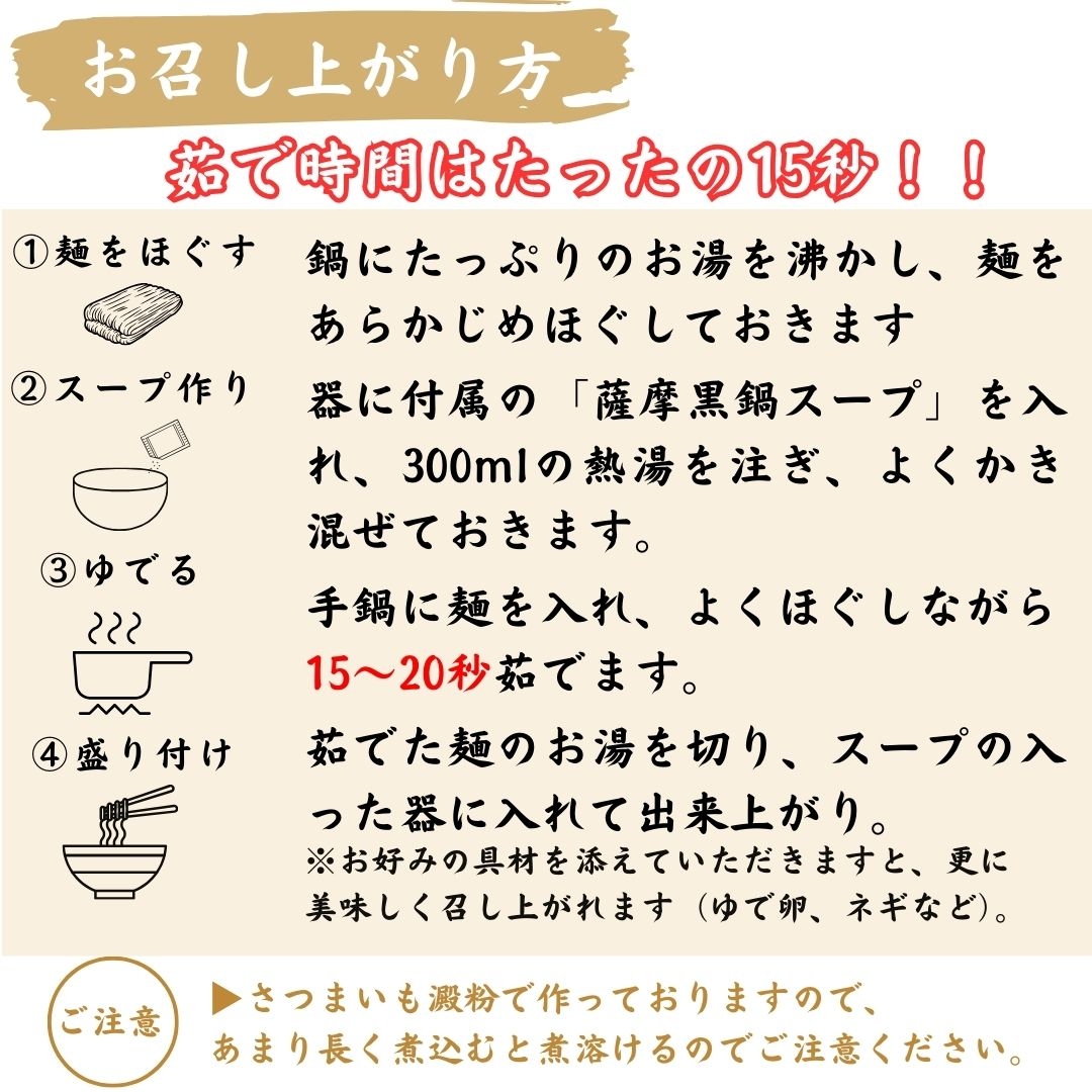 麺は鹿児島県産さつまいもでん粉を使用。スープは薩摩黒鴨を肉・ガラ・数種類の野菜と半日煮込んで作っており、他にはない味わいです。旨味とコクが凝縮された黒鴨スープとさつまいも麺の絶妙なハーモニーを是非一度ご賞味下さい。