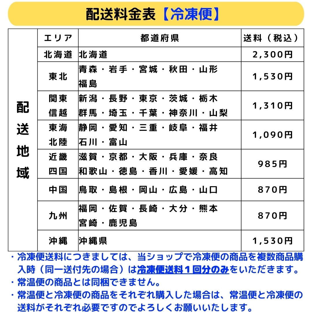 保存方法:冷凍(ー18℃以下)にて保存してください。解凍後は冷蔵庫(10℃以下)で保存の上、お召し上がりください。