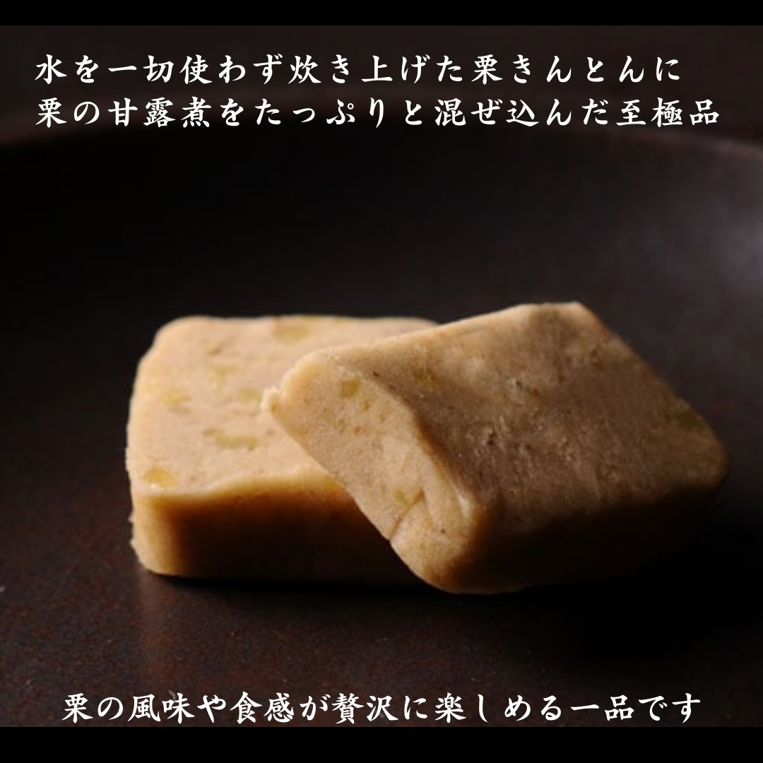 水を一切使わず炊き上げた栗きんとんに栗の甘露煮をたっぷりと混ぜ込んだ至極品。栗の風味や食感が贅沢に楽しめる一品です。