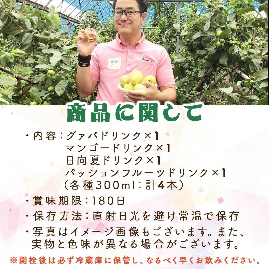 ・グァバドリンク:グァバ(宮崎県産)、果糖、はちみつ