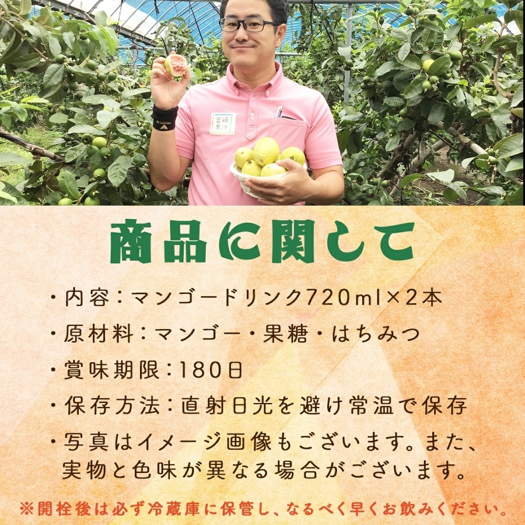 ・マンゴードリンク:マンゴー(インド、宮崎県産)、果糖、はちみつ