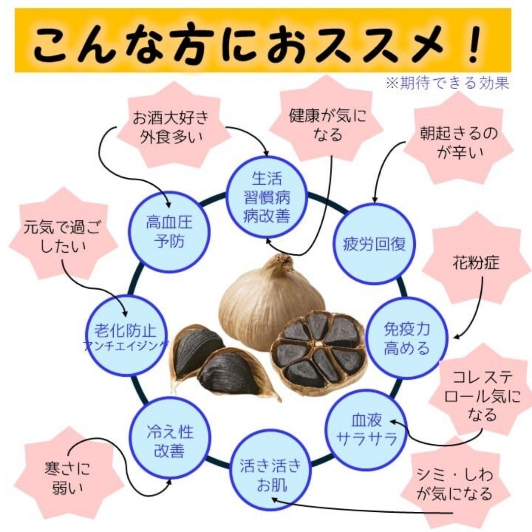熟成発酵させることにより、にんにく特有の元気成分や、抗酸化作用・動脈硬化などに効果があると期待されている成分が数十倍に増加すると言われています!