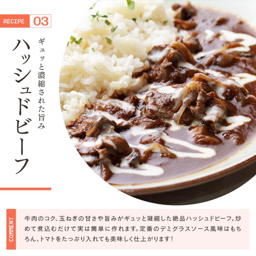 牛丼やカレー、炒め物やしぐれ煮、すき煮など、普段の食卓を黒毛和牛で贅沢にお楽しみください。