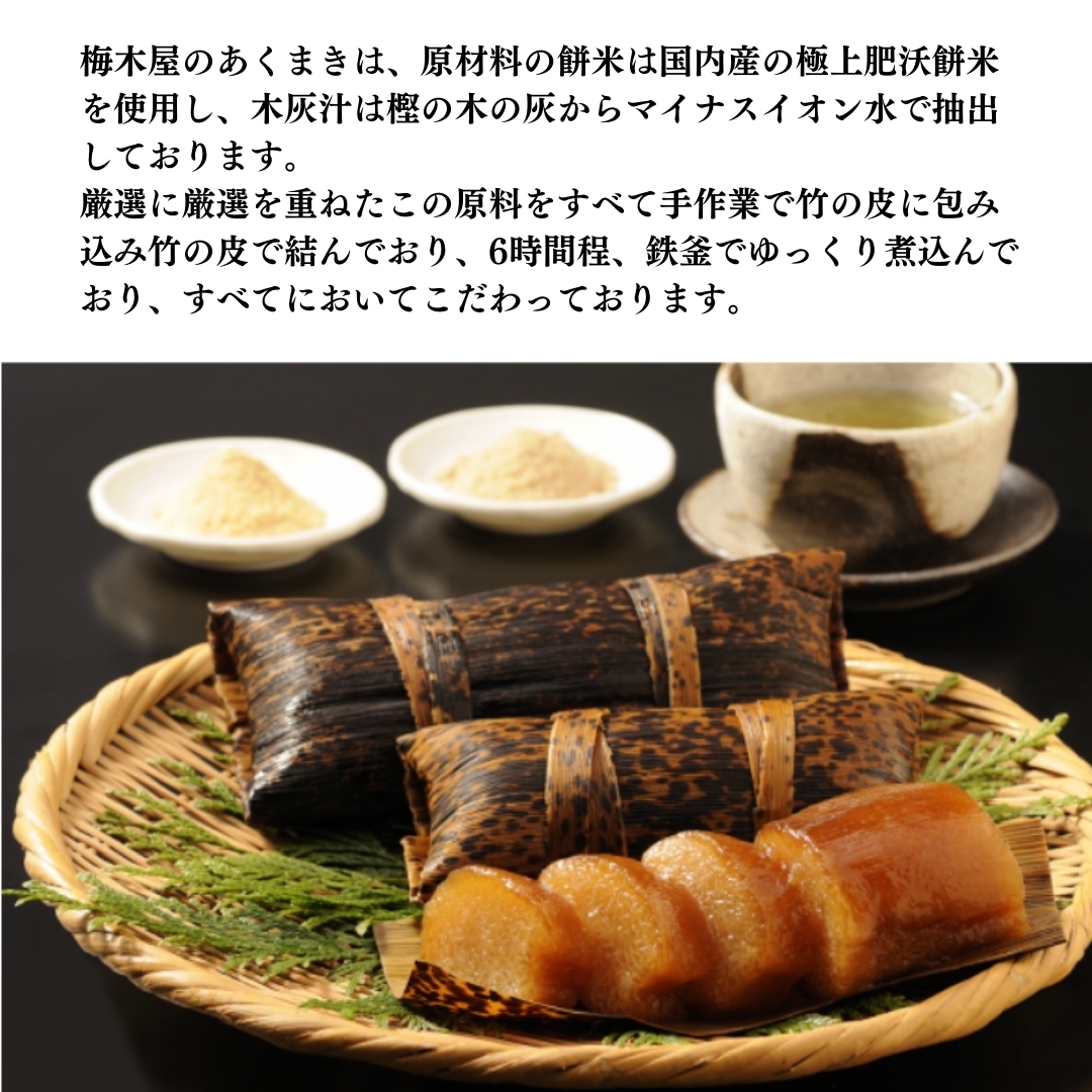 へらや糸(竹の皮ひも等)で本品を輪切りにして、付属のきな粉を「あくまき」にふりかけてお召し上がり下さい。生ものですのでお早めにお召し上がり下さい。