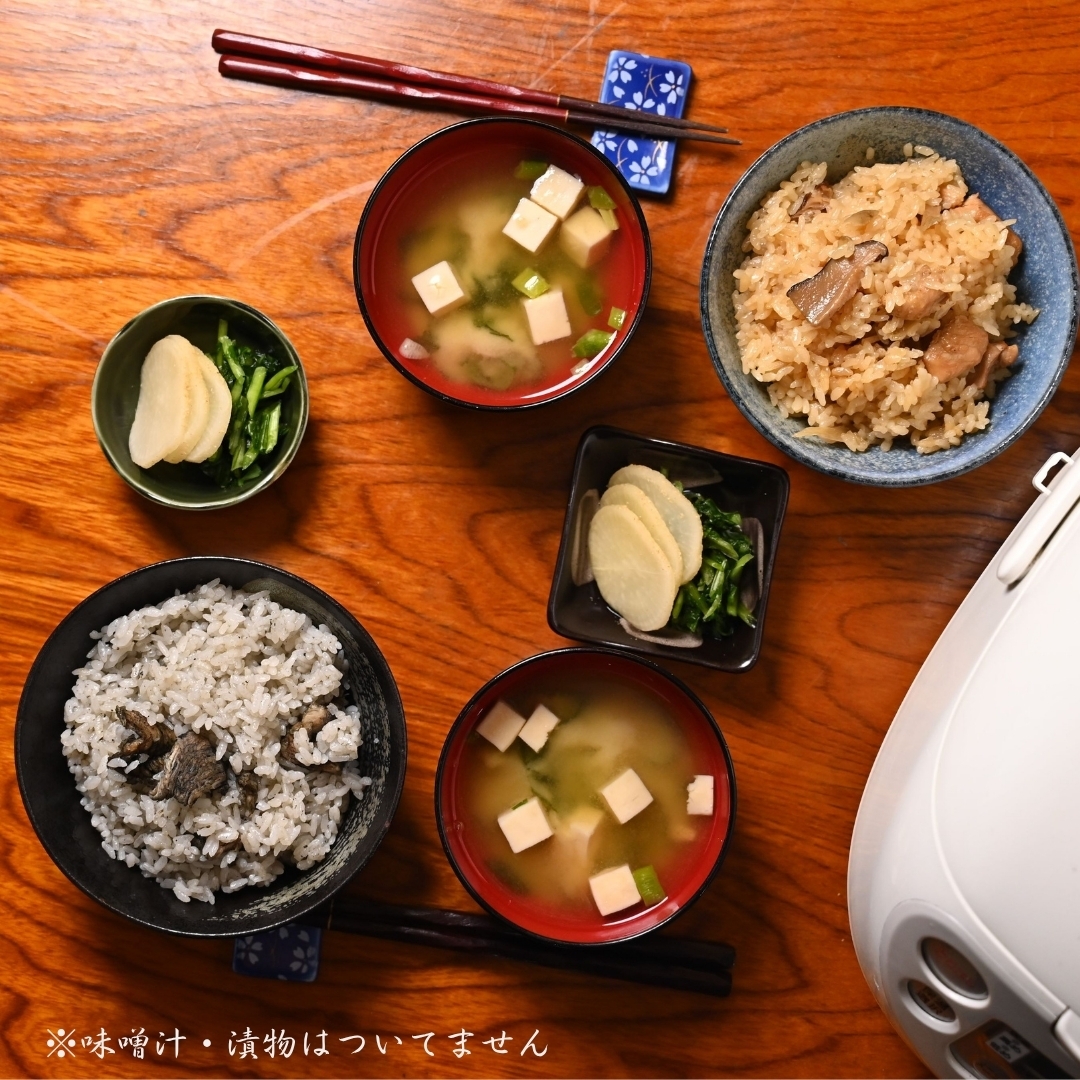 【鶏炭火焼めしの素】鶏肉、ごぼう、椎茸、砂糖、醤油(小麦を含む)