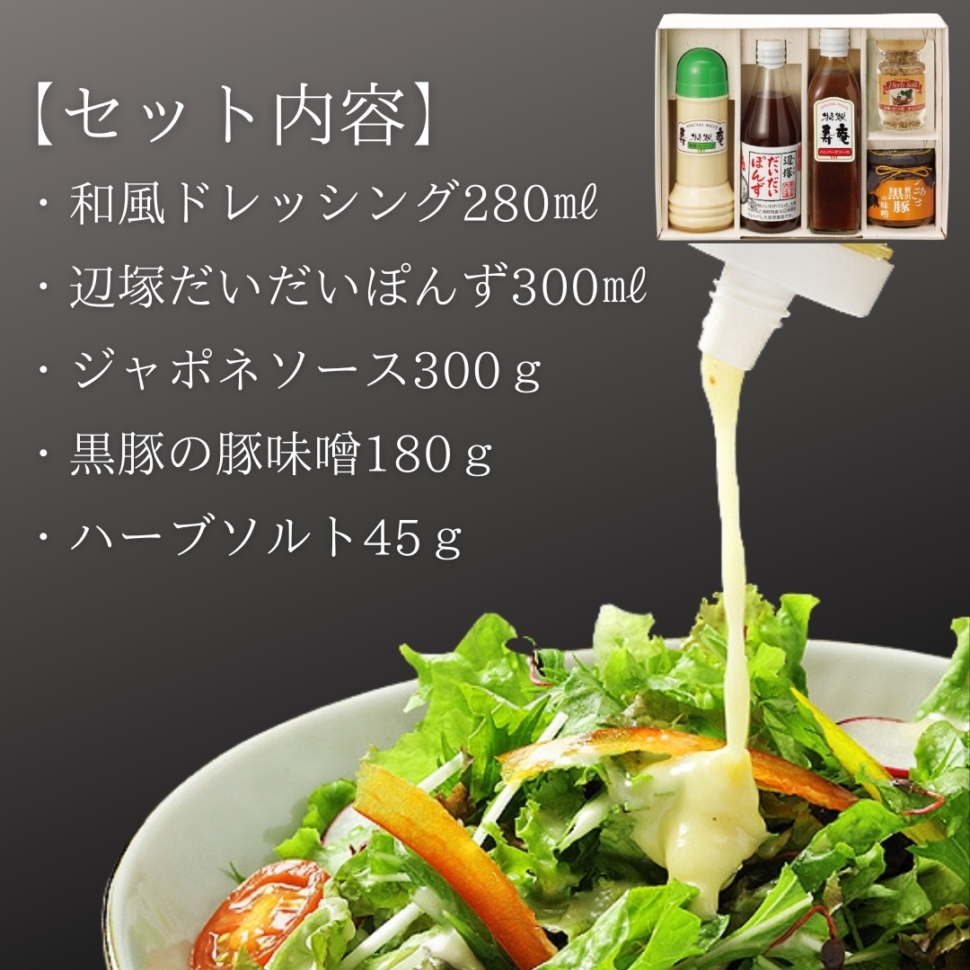 人気の調味料がコラボレーション。オリジナルのドレッシング&ソースをセットにしてお届け致します。