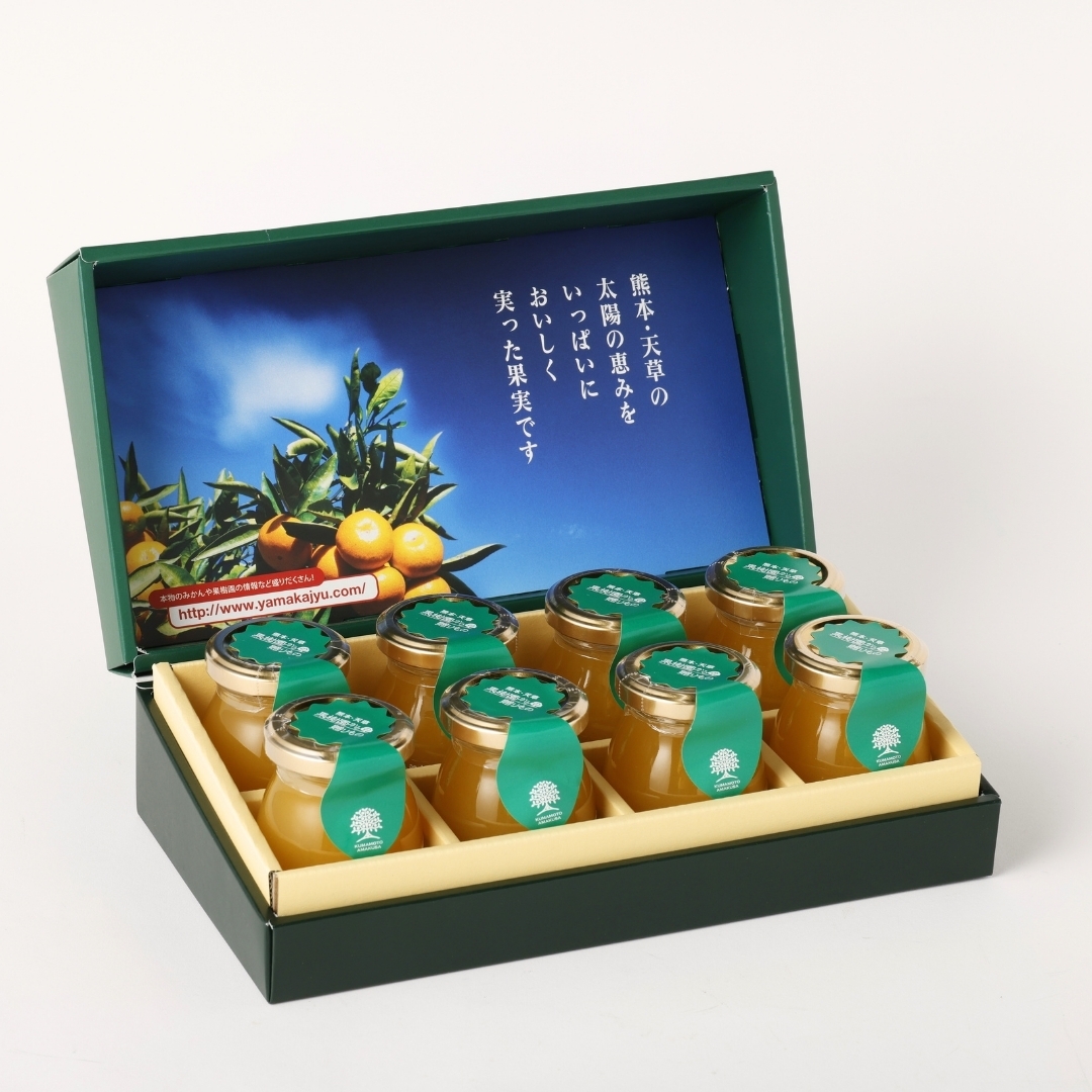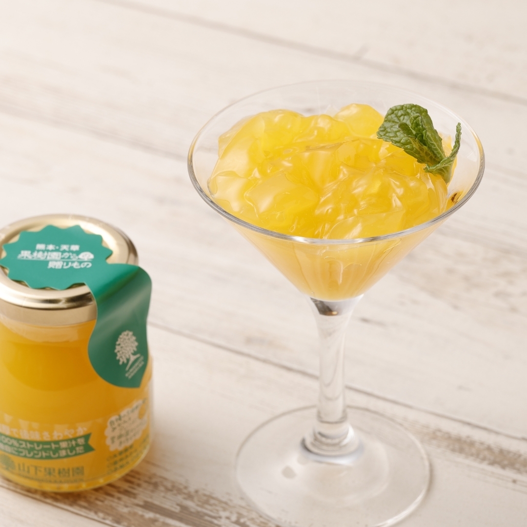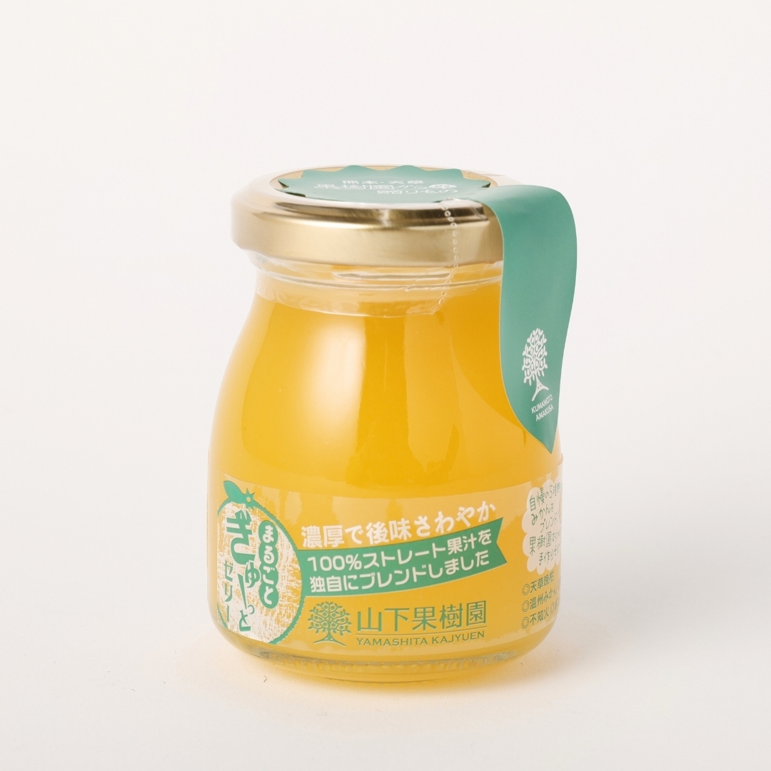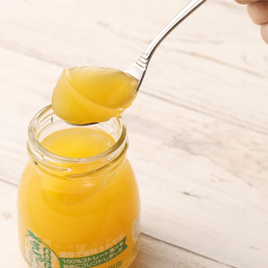 自社農園で育てた5種類の柑橘ストレート果汁(不知火・清見・ポンカン・あまくさ晩柑・みかん)を90%以上使用した濃厚で風味豊かなゼリー。