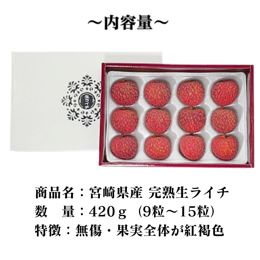 冷凍物では決して味わえない、国産ならではの宮崎県産完熟生ライチの味と香りをお楽しみください。