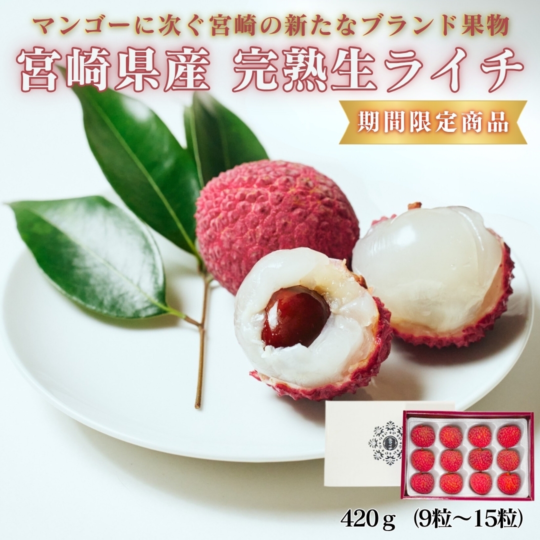 冷凍物では決して味わえない、国産ならではの宮崎県産完熟生ライチの味と香りをお楽しみください。