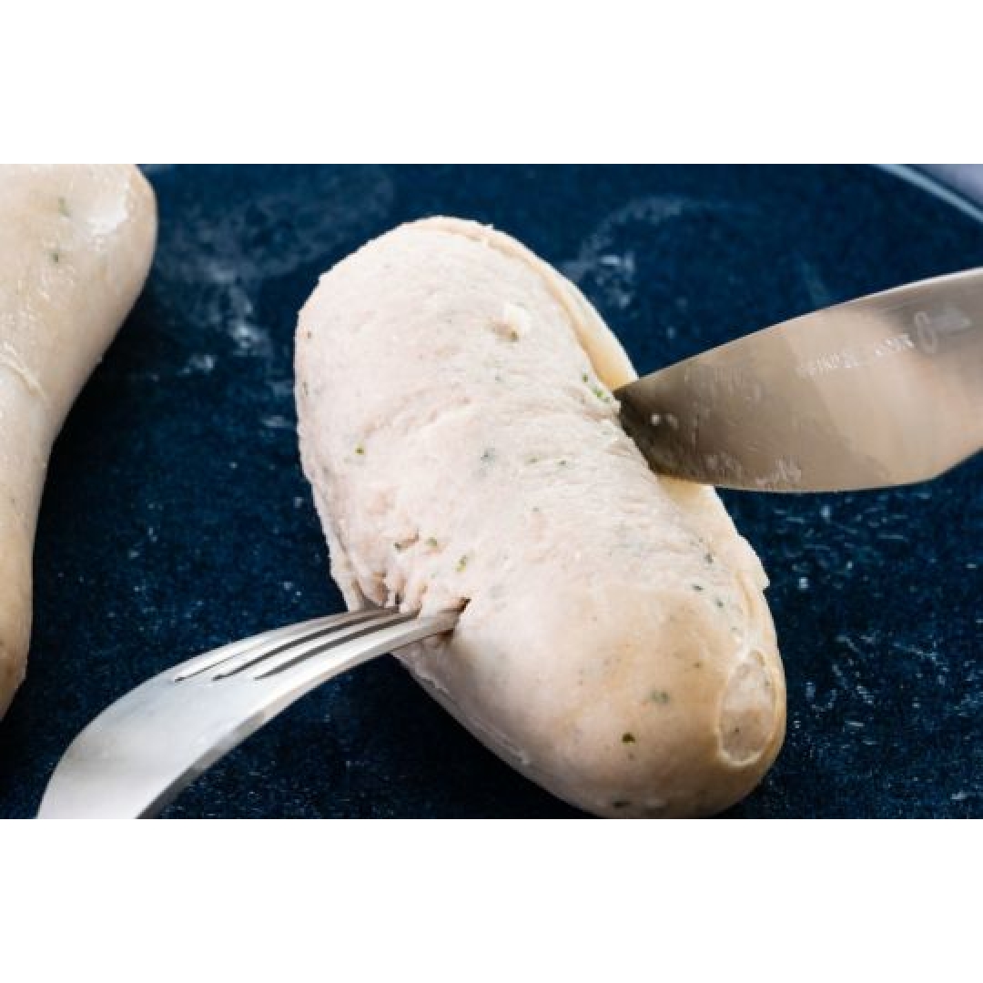 本場ドイツのレシピで仕上げた、ふわふわとした食感と香辛料の豊かな風味が特徴の白ソーセージです。鍋にお湯を沸かし、沸騰前に商品を入れてください。商品を入れたら弱火にして5~8分程ボイルし、ボイル後表面にナイフで軽く切れ目を入れて薄皮を剥き、お好みの大きさに切ってお召し上がりください。※表面の薄皮は食べても問題はございません。