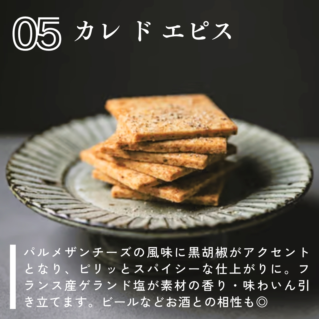 小麦粉(国内製造)、バター、砂糖、卵、ナチュラルチーズ、食用大豆油、食用なたね油、塩、ブラックペッパー(一部に小麦・大豆・卵・乳成分を含む)