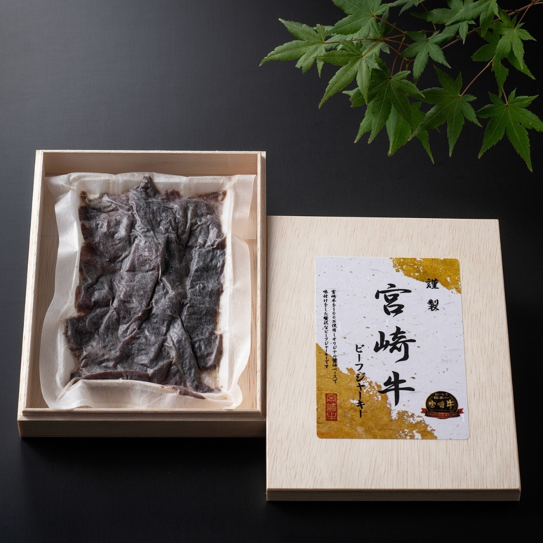 一度食べたらやみつきになる、宮崎牛の極上ジャーキー!贈答用に最適な木箱入りです!!