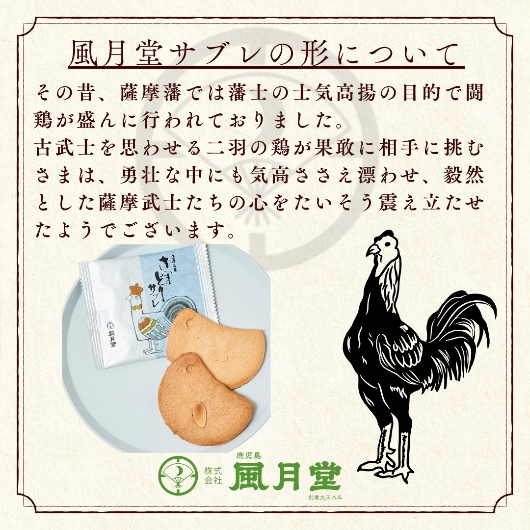 大正8年(1919年)創業、風月堂を代表する銘菓「さつまどりサブレ」。