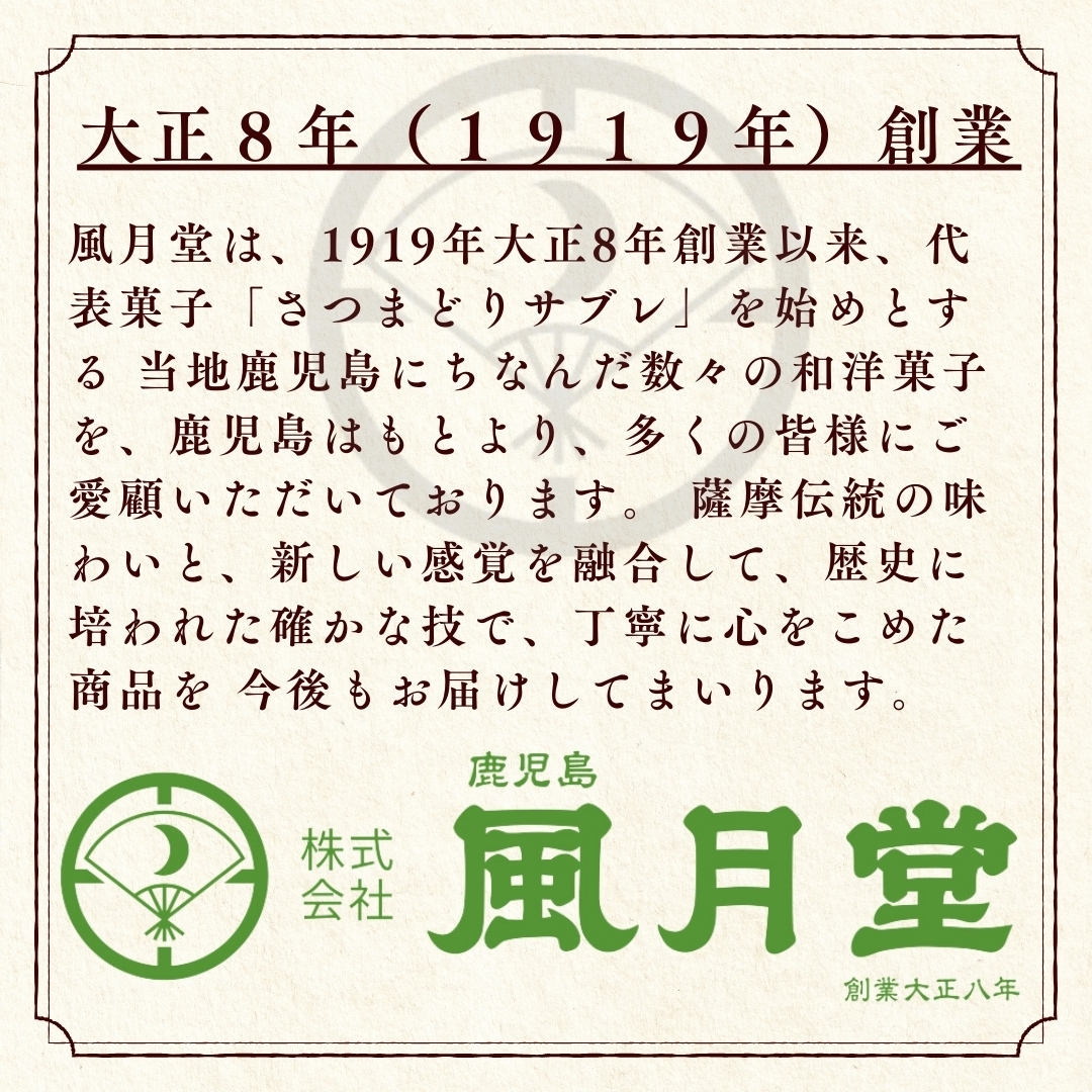 大正8年(1919年)創業、風月堂を代表する銘菓「さつまどりサブレ」。