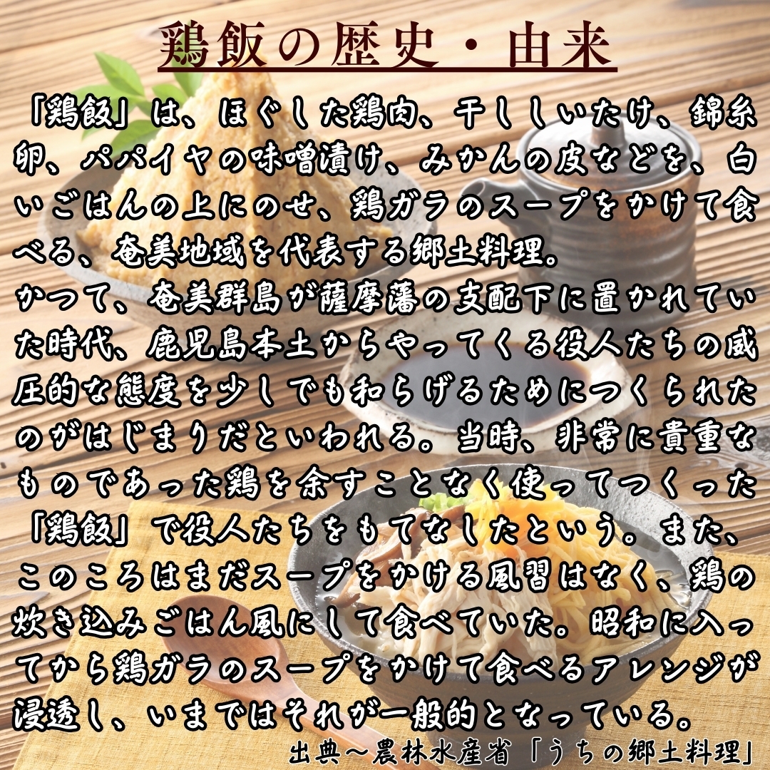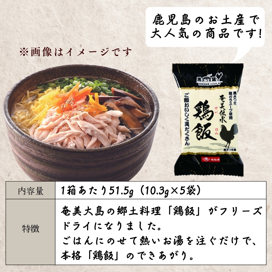 奄美大島の郷土料理「鶏飯」がフリーズドライになりました。ごはんにのせて熱いお湯を注ぐだけで、本格「鶏飯」のできあがり。