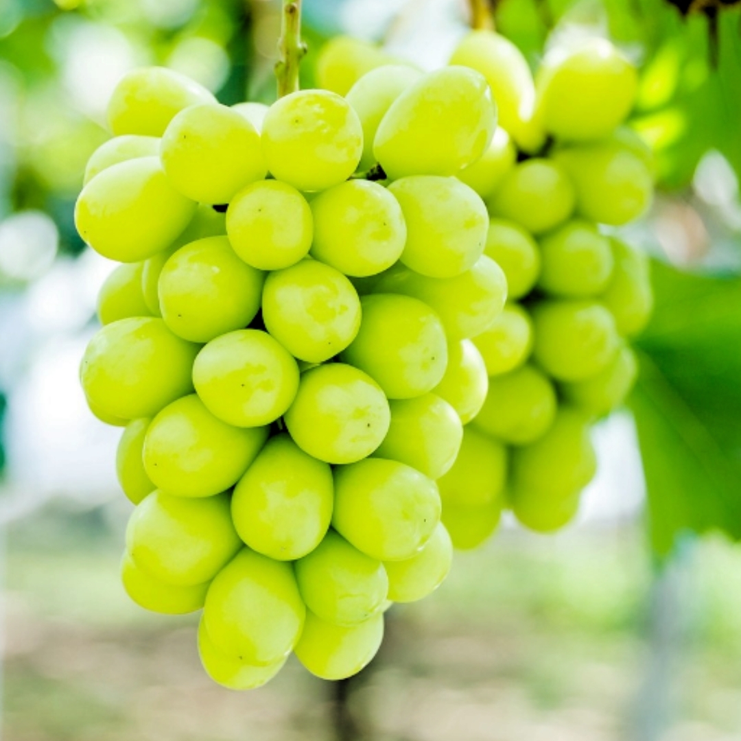 しまりのある果肉は果汁が豊富。また果皮が薄くてやわらかく、皮ごと種無しで食べられるのも人気の1つ。パリッとした歯ごたえで、ジューシーで上品な甘みと高貴な香りも食べる人を魅了します。