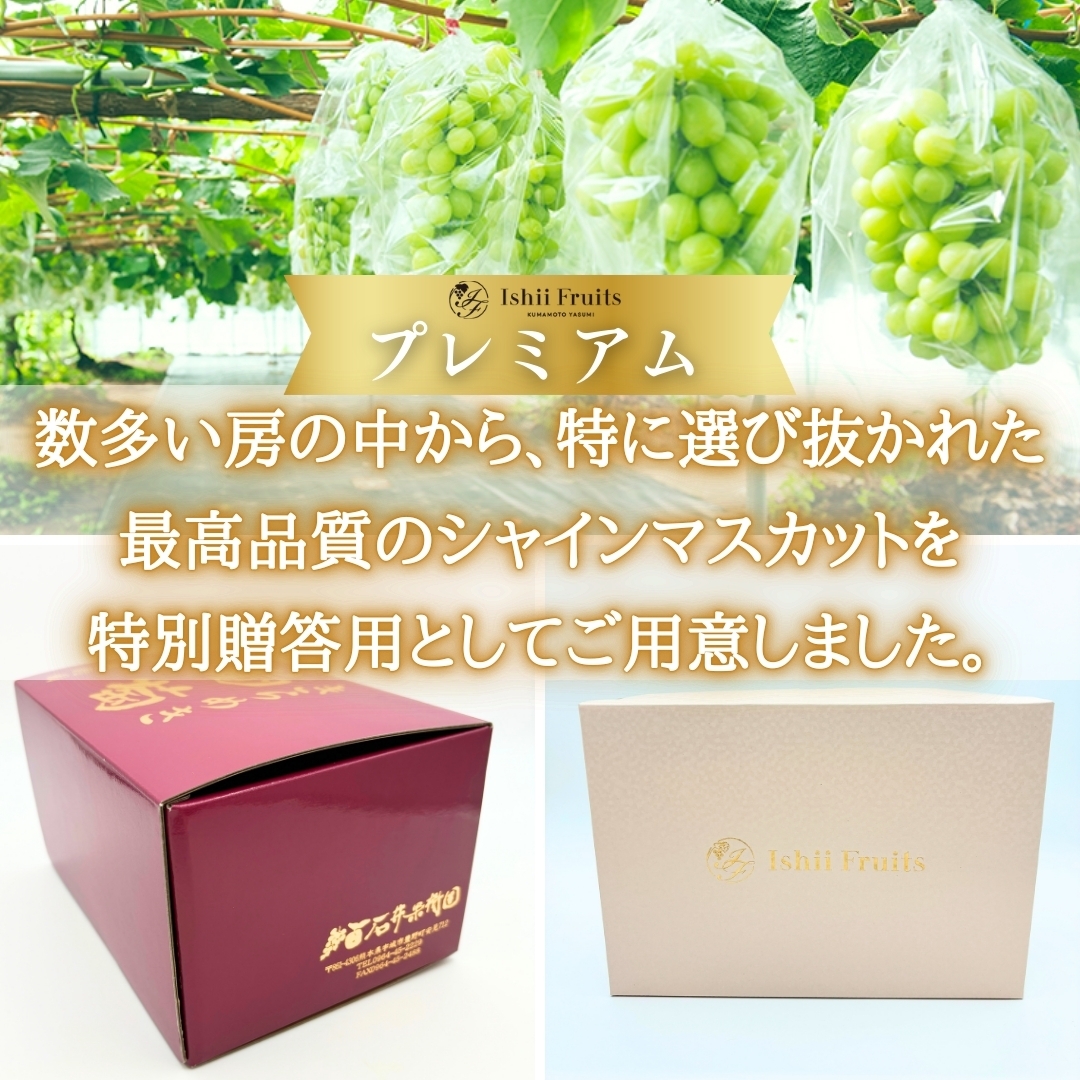 特別贈答用に選び抜かれたプレミアムなシャインマスカットをお届け致します。
