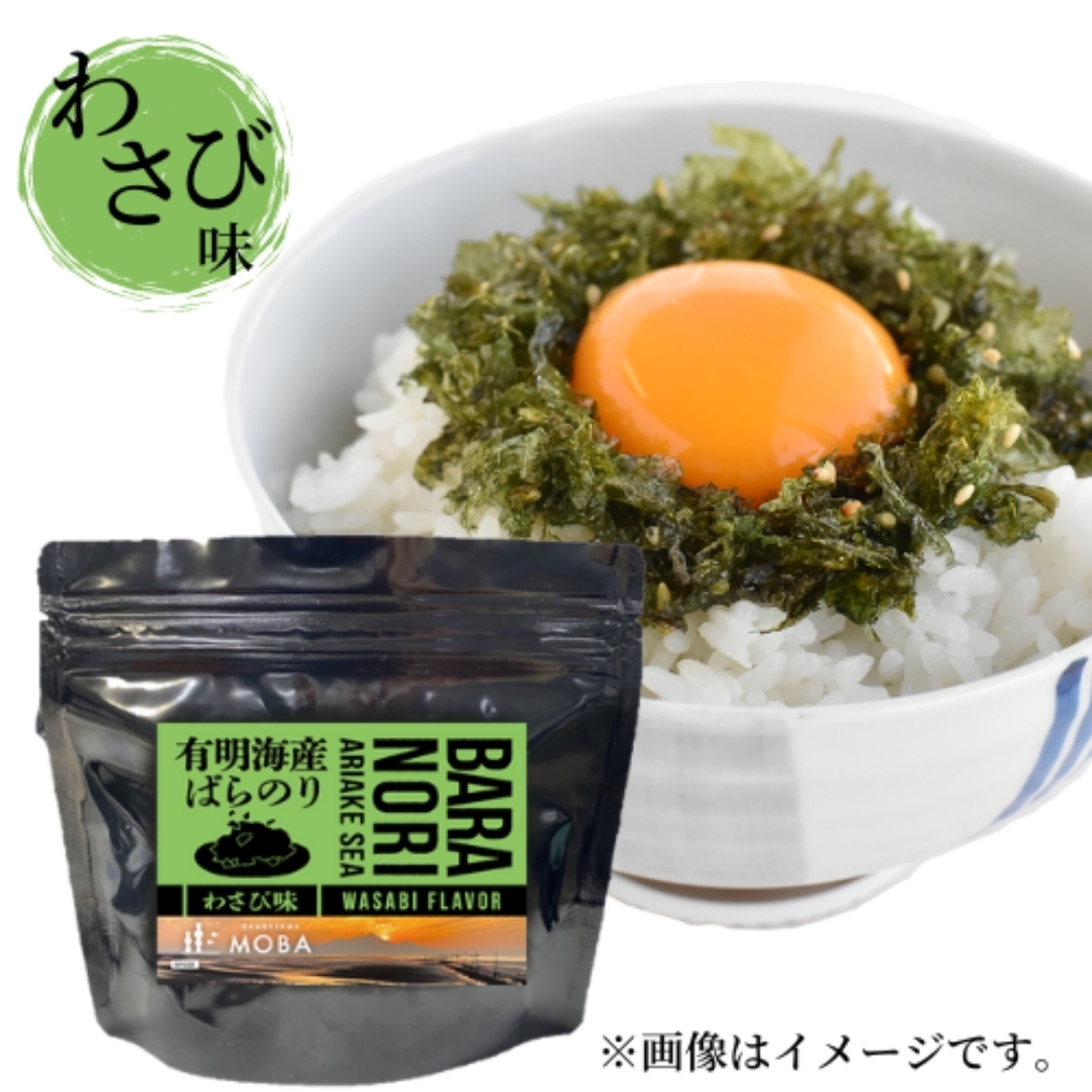 日本最大産地「有明海」より産地直送された海苔は、柔らかく、口溶けもよく、海苔本来の風味が残り、きざみのり、もみのりと違い甘味と旨味を感じる海苔を自家焙煎で丁寧に香ばしく焼き上げた「焼きばらのり」。