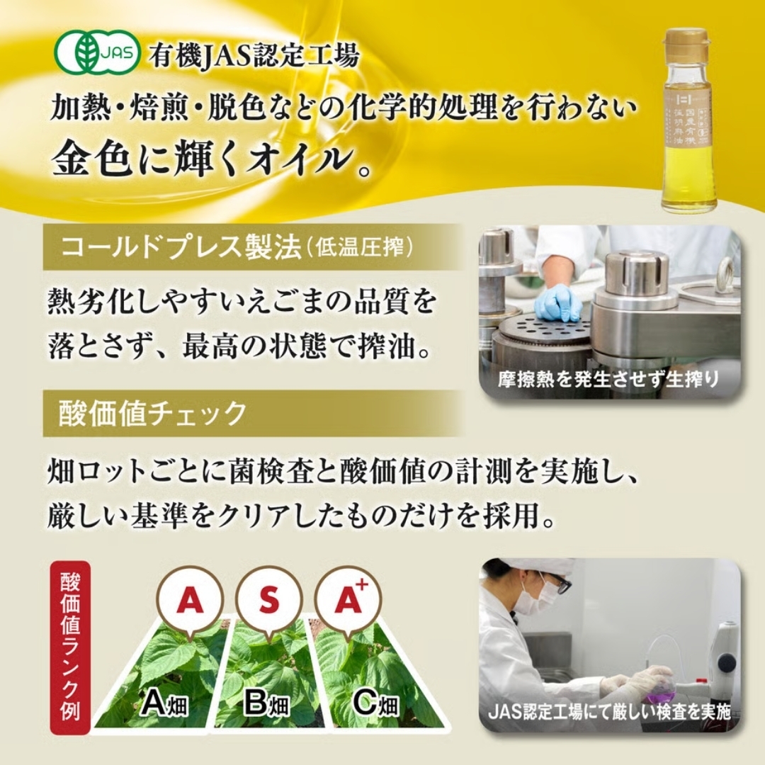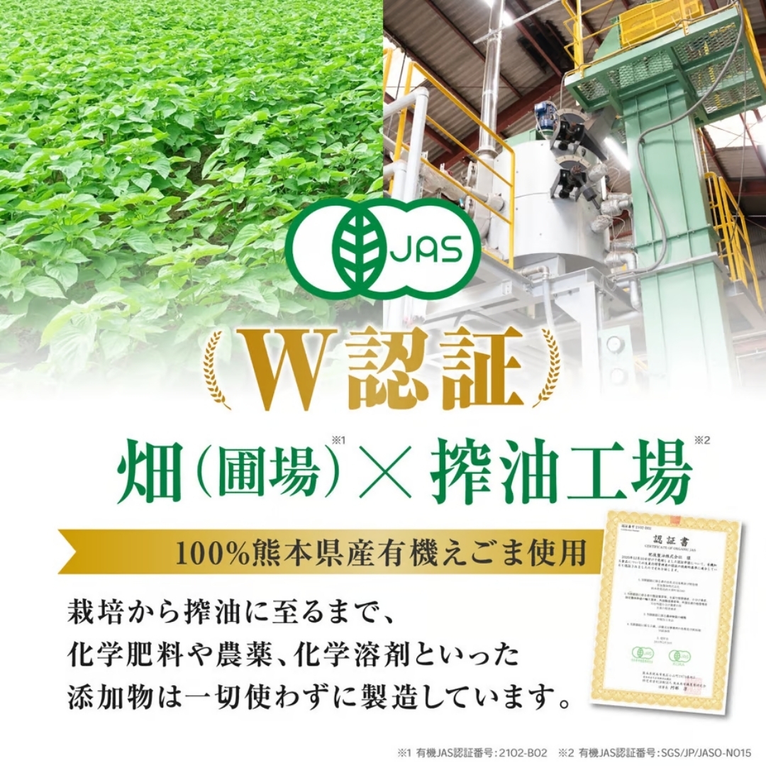 有機JAS認証圃場で栽培されたえごま種子のみを使用!自身の健康生活を改善したい方、食生活に気を遣われている方に!