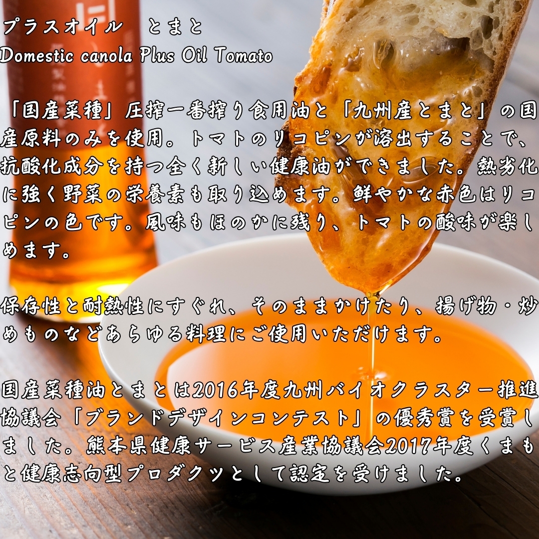 食用なたね油(なたね種子(国産100%))、とまと粉末(とまと(九州産100%))