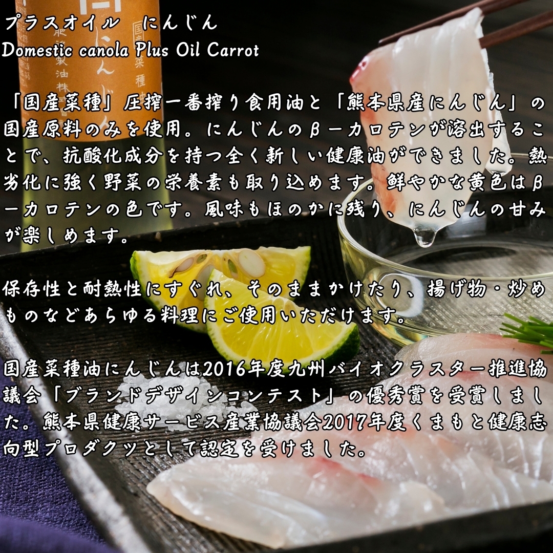 食用なたね油(なたね種子(国産100%))、にんじん粉末(にんじん(熊本県産100%))