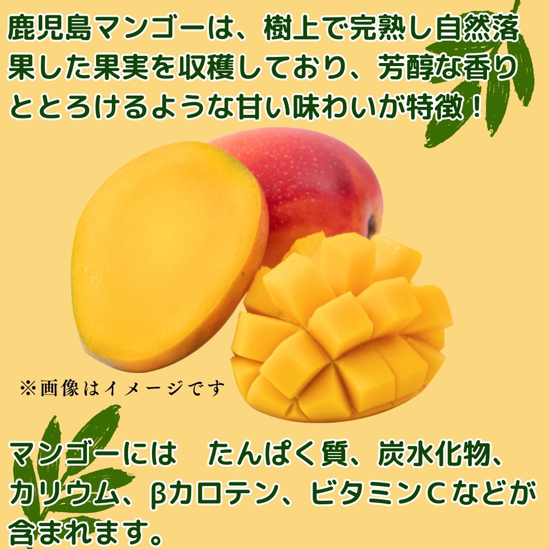 鹿児島マンゴーは、樹上で完熟し 自然落果した果実を収穫しており芳醇な香りと、とろけるような甘い味わいが特徴です。