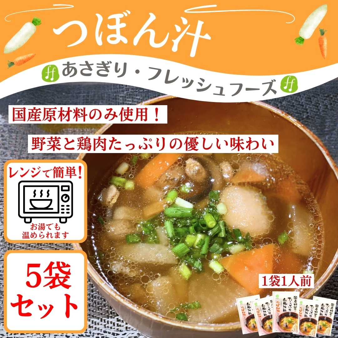 “『原材料はすべて国産!』野菜と鶏肉たっぷりのつぼん汁!”