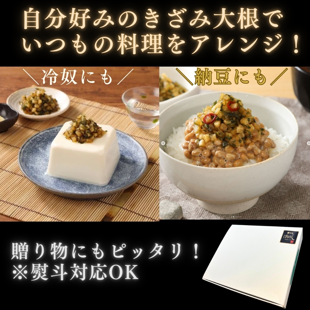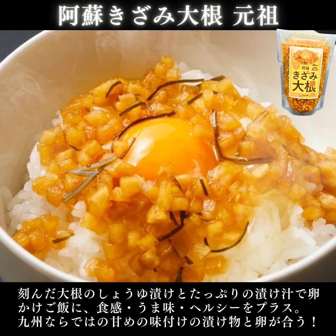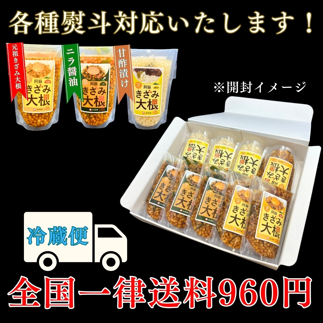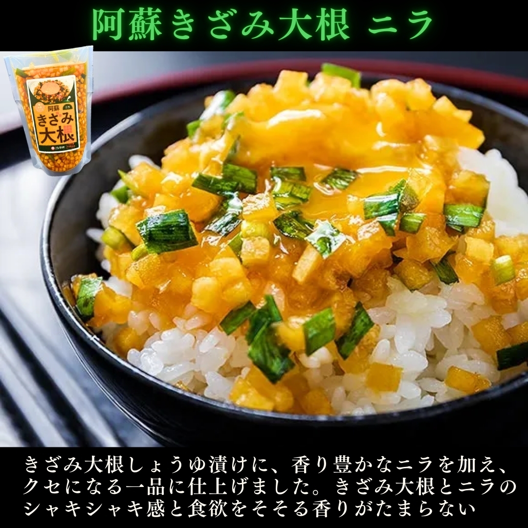 大人気の阿蘇きざみ大根を、元祖、ニラ、甘酢漬けの3種セットでお届けします!