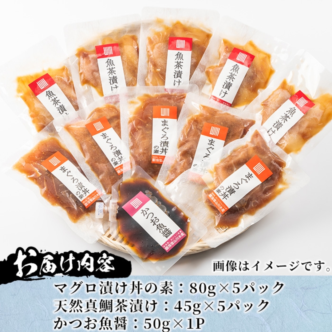 漁師が品質にこだわった魚を選別し、1匹1匹丁寧に手さばきで切り分け、和食の職人によって開発されたしょうゆベースのタレに漬け込んだ真鯛のお茶漬けセットです。