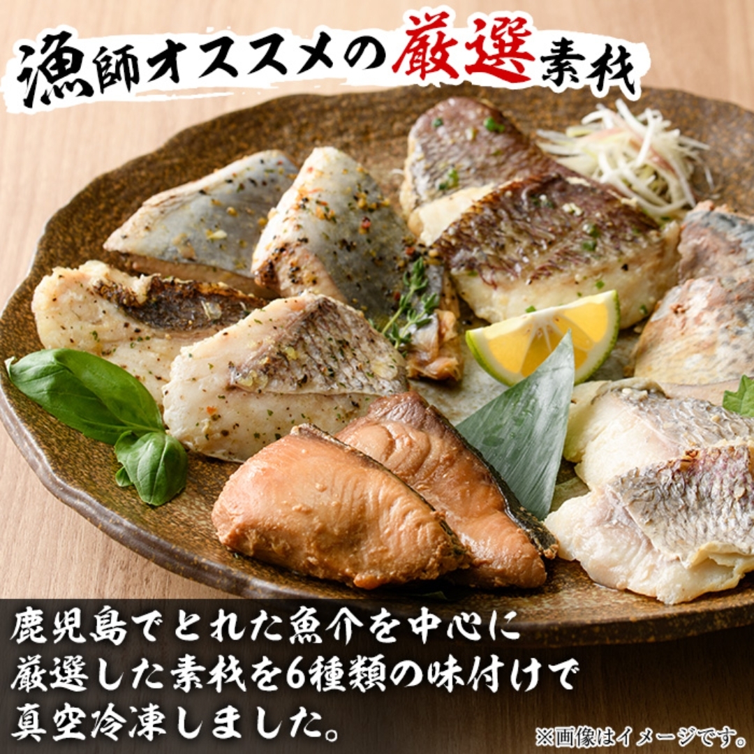 鹿児島でとれた魚介を中心に厳選した素材を6種類の味付けで真空冷凍しました。