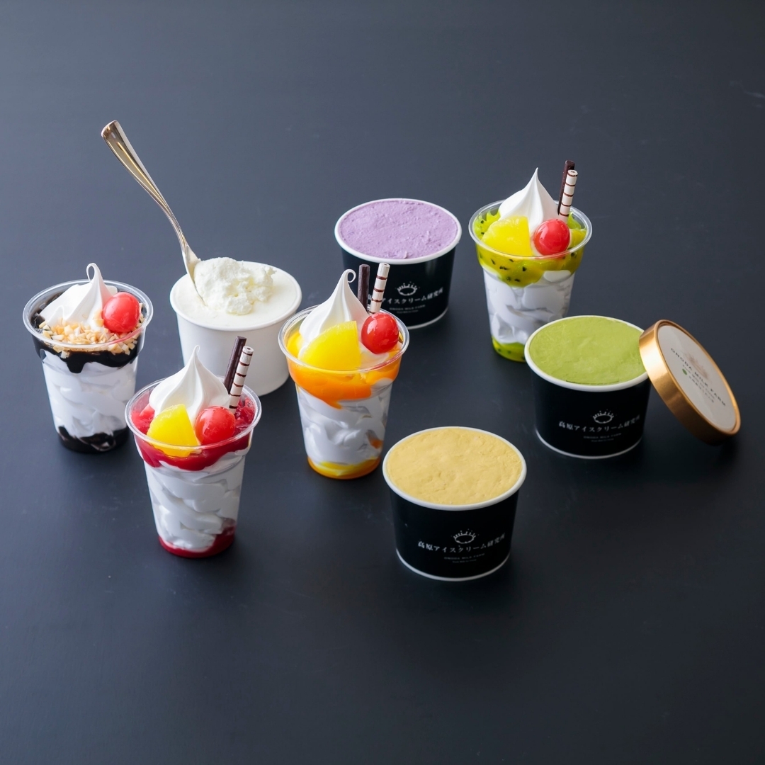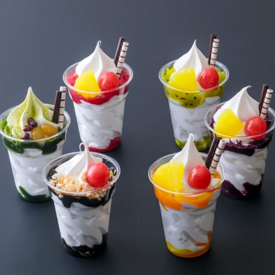 自社牧場でとれる搾りたての生乳から作るソフトクリームと、各種フルーツソースを使用したご褒美スイーツパフェ!牛乳本来の風味を生かした贅沢な味わい!