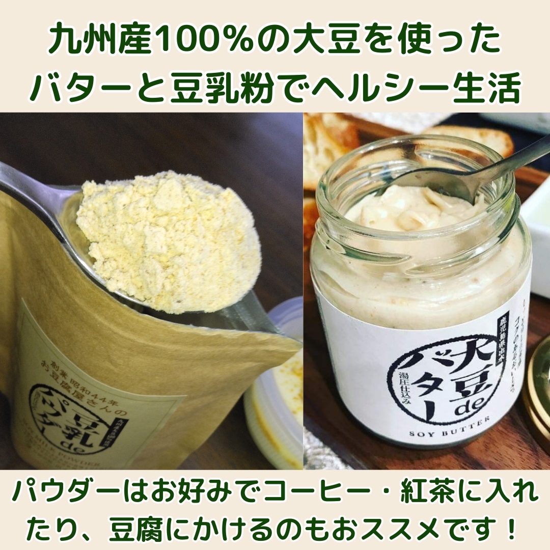 創業昭和44年の豆腐屋がこだわり製法で作る大豆deバターと豆乳deパウダー。
