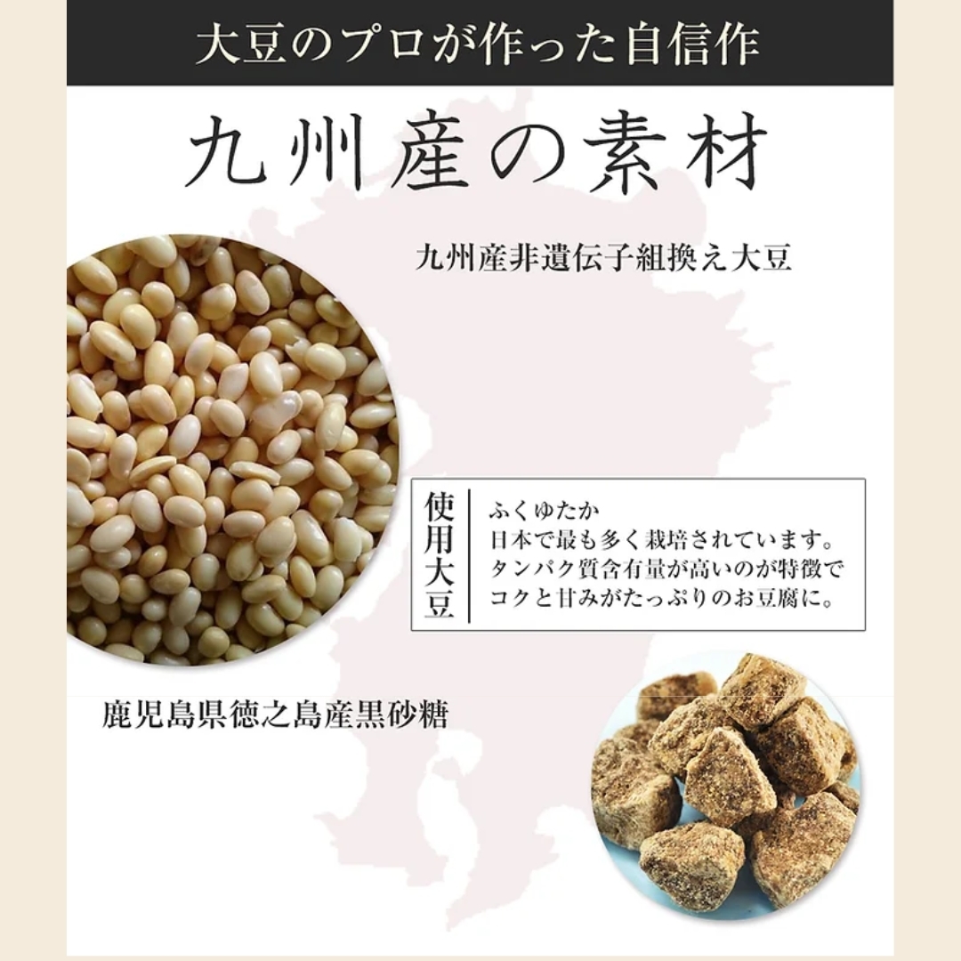 九州産素材(九州産大豆・徳之島産黒糖)にこだわり、植物性油脂100%、防腐剤不使用!!