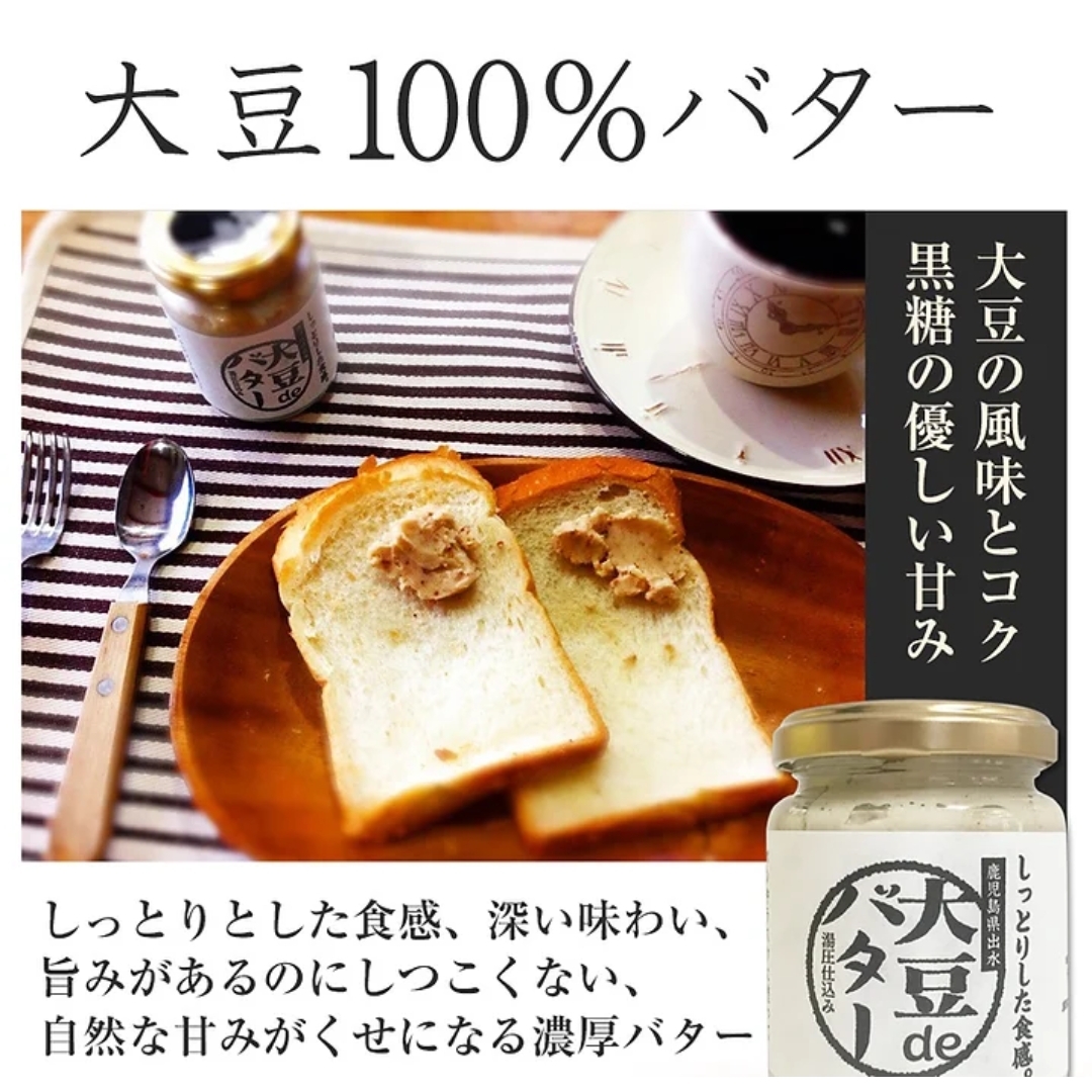 大豆deバター:九州産大豆、植物性油脂(トランス脂肪酸フリー)、鹿児島県産黒砂糖