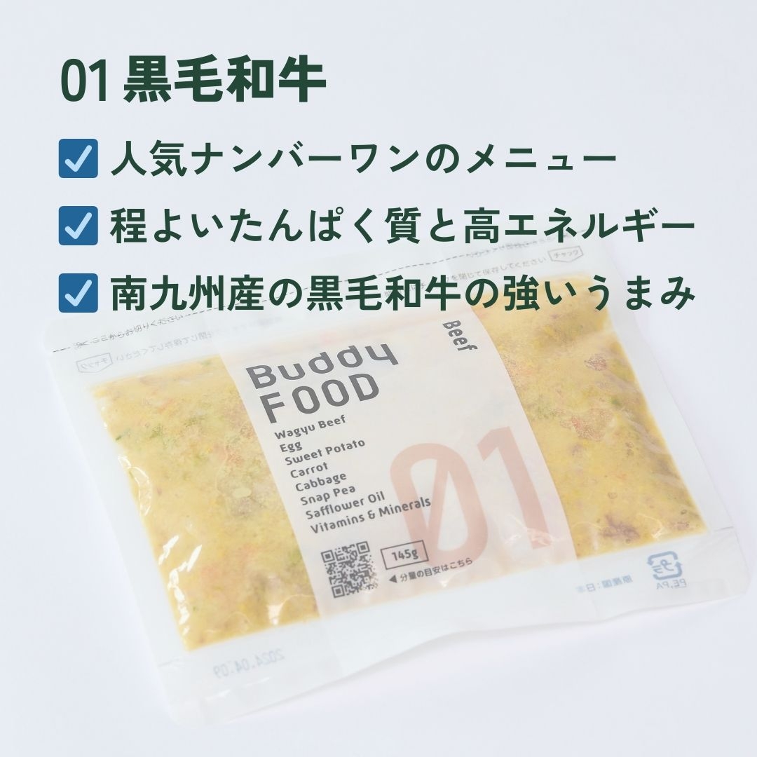 牛肉は南九州産の黒毛和牛のみを使用し、ご飯の量とエネルギー量をバランス良く設計することで、色々な子に召し上がっていただけるオールマイティなレシピになっています。黒毛和牛の強い旨味と、さつまいもやにんじんなどの野菜の甘みが絶妙にマッチしています。