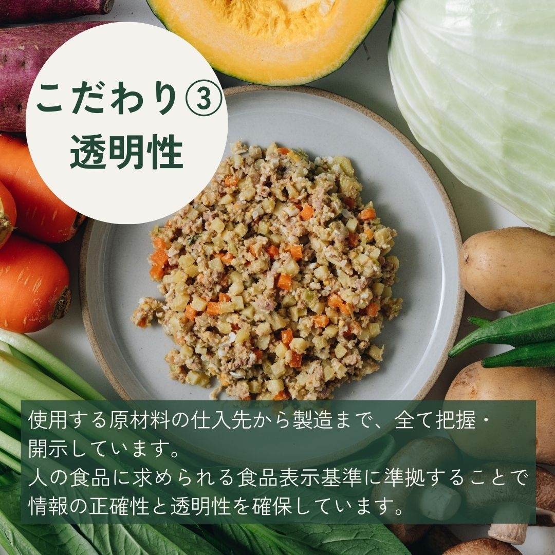 脂質が少ない良質な九州産鶏むね肉と、ワンちゃんに大人気の九州産鶏レバーをふんだんに使用し、高タンパクでバランスの良いレシピに仕上げました。かぼちゃの甘味としいたけの旨味もたっぷり。ローストアマニのオメガ3脂肪酸による抗酸化作用も期待できます。
