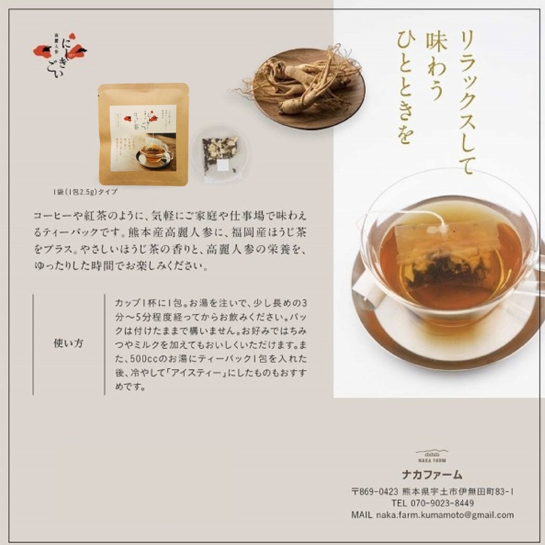 ・高麗人参ほうじ茶TeaPack 10包(1包2.5g(高麗人参チップス(1.5g)×ほうじ茶葉(1.0g))