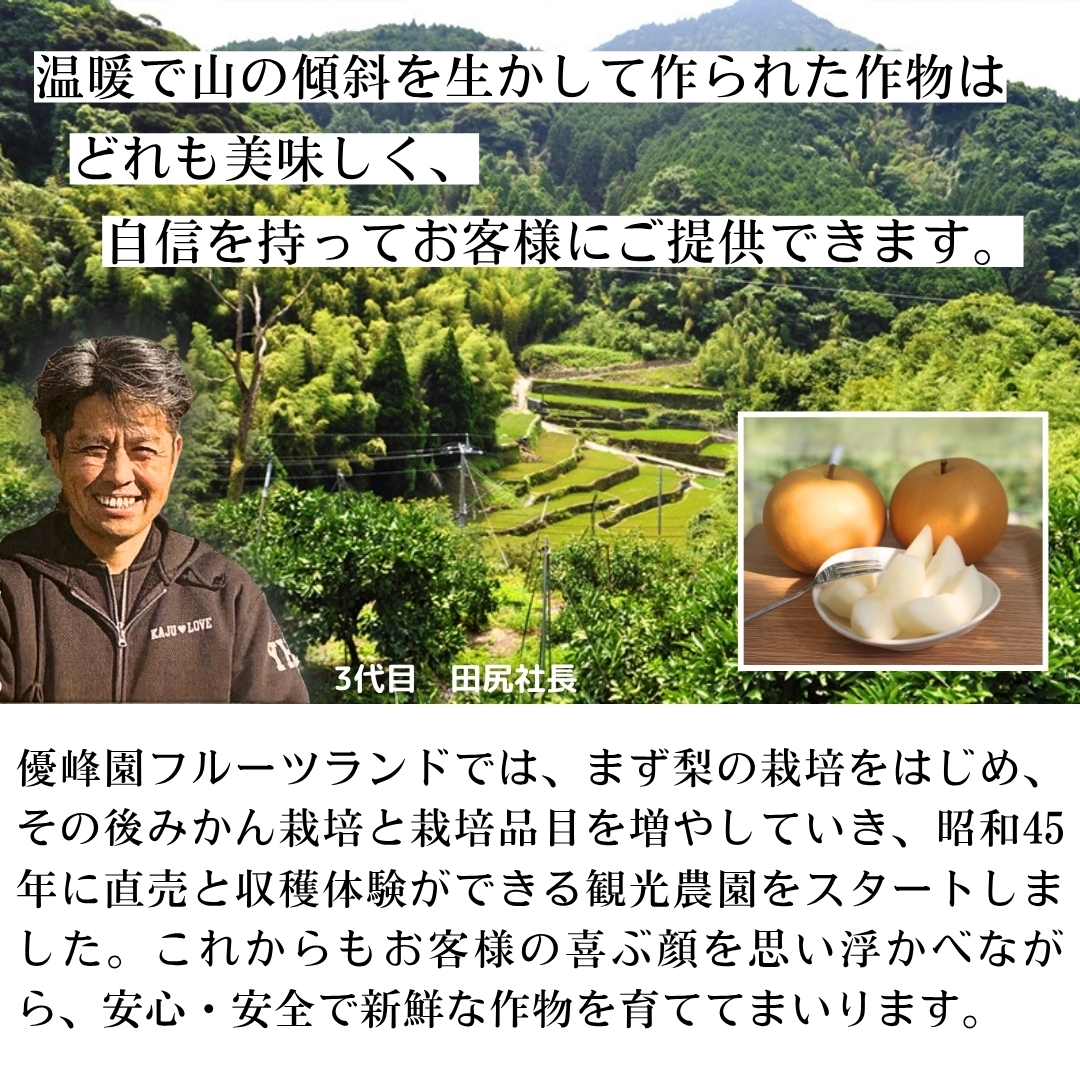 代々、梨を育て続けて90年以上!!熊本県河内町にある観光農園「優峰園フルーツランド」から、みずみずしくジューシーな梨を期間限定で販売いたします!