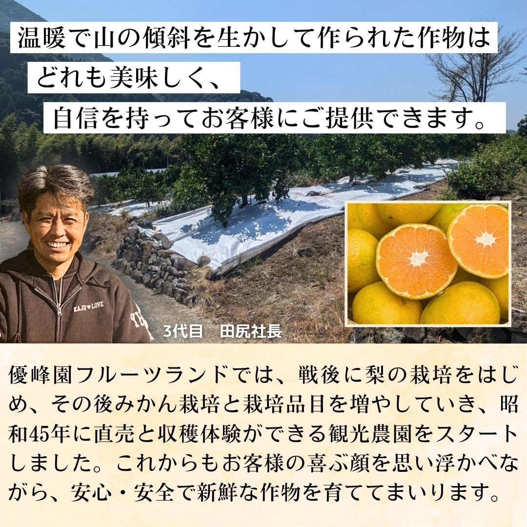 優峰園フルーツランドのみかんで旬を先取りしませんか?金峰山の麓ですくすくと育った爽やかな河内みかんを是非お試しください!